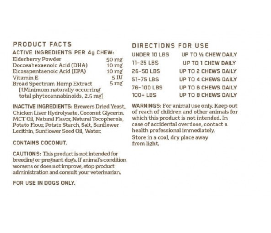 - Charlotte’s Web Cognition Chews include Elderberry Powder, DHA, EPA, and Vitamin E. So how can these help your dog? Let’s dive in…